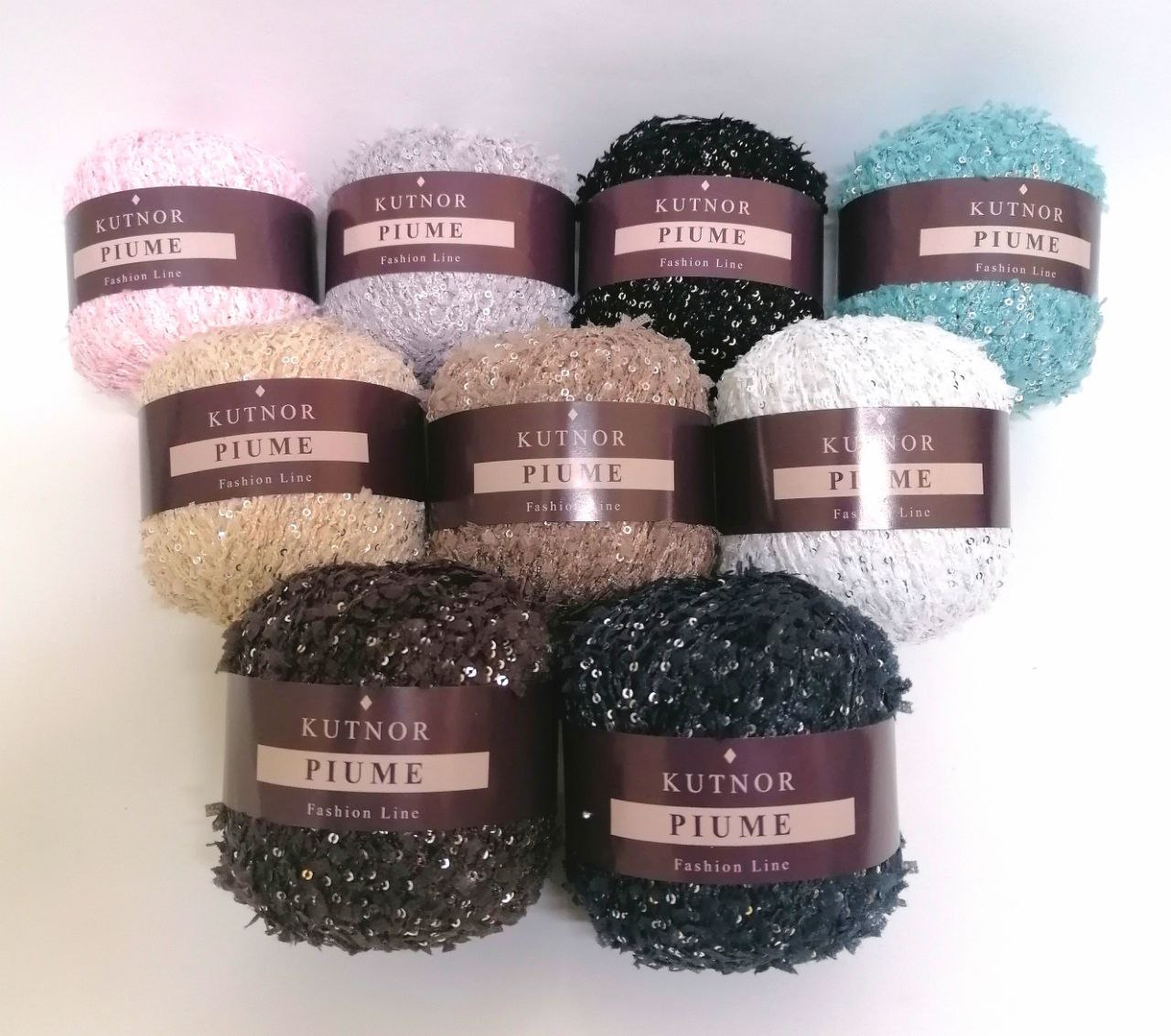 Поступление пряжи в моточках Piume от бренда KUTNOR,в составе 80% нейлон,20% пайетки.моток 50гр /90м,в упаковке 10 моточков