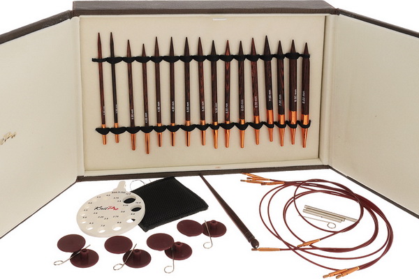 Спицы уложены в красивую коробку, обтянутую стильной экокожей.